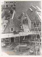 Huize Groeneweg aan de Groeneweg tijdens de verbouwing. Juni 1983. Gezicht op de twee kleine woningen van bovenaf. - De open plek richting Groeneweg ontstaan door de afbraak van verkrotte woningen aan de Baanstraat.