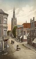 Gezicht op de Kleiweg in Gouda met Kleiwegkerk. Het pand links staat op de hoek met de Turfmarkt. - Het laatste stukje van de Raam tot aan de Bogen.