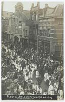 Feest van de Belgische vluchtelingen. 19-6-1916. in optocht en verkleed over de Kleiweg, gadegeslagen door een talrijk publiek. -