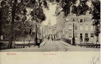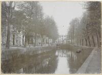 De Tiendewegbrug op de voorgrond, daarachter de Lange Tiendeweg (voornamelijk de noordzijde). c. 1902. - Hoge Gouwe, gasfabriek