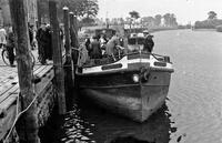 IJsselkade, aankomst per schip van evacués uit Wageningen -