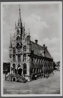 De voor- en oostzijgevel van het stadhuis op de Markt. c. 1940. -