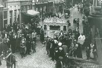 Het draaiorgel (gebouwd door Pierre Verbeek uit België) van exploitant Jan Huurman op de Kleiweg (?) temidden van publiek. Op zaterdag en zondag aanwezig in cafe-restaurant Overschotje van Van Dijk, zodat men kon dansen -