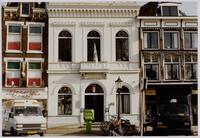 Gebouw Arti-Legi aan de Markt, 1992. Het gebouw stamt uit 1855. Beneden was de kantonrechter gevestigd (-> legi) en boven de stadstekenschool (-> arti). Van 1872 tot 1939 was het museum voor stedelijke oudheden, nu is het VVV-kantoor. 1992, - Vogelvluchtopname vanaf Spoortunnelflat over N.S. emplacement met nieuw station in aanbouw, 26-05-1983. Links in de achtergrond het gebouw van de Goudse Verzekeringen aan het Stationsplein.