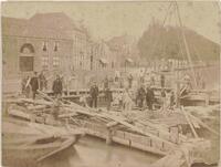 Opnamen van het Zwaansgat. Mei 1961. Vanaf de Bogen. - Een gedeelte van de ingang van complex stadserf aan de Nieuwehaven, 1980.