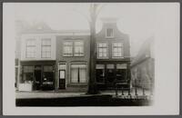 Gezicht op Nieuwehaven 234 t/m 240 in Gouda (rond 1930). Op de hoek met de Korte Dwarsstraat bevindt zich een meubel- en houtwarenzaak. -