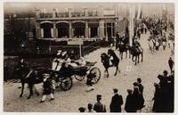Historische gecostumeerde optocht vermoedelijk t. g. v. de viering van de 100-jarige onafhankelijkheid, 1913. De stoet passeert hotel La Station op de hoek van de Crabethstraat. -