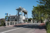 Mallegatbrug over de Mallegatsluis van de Nieuwe Veerstal naar de Schielandse Hoge Zeedijk - Naaierstraat, straatbeeld met witte streep als straatmarkering en daarbij geverfde tekst