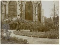 Gezicht op het plantsoen aan het Willem Vroesenplein grenzende aan de St.-Janskerk (links zichtbaar), ca. 1910 -