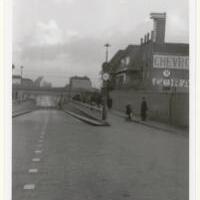 De spoorwegtunnel in de Spoorstraat, gezien vanaf het Kleiwegplein. c. 1950. -