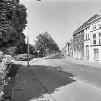 Oude Doelenbrug gezien vanaf het Houtmansplantsoen met op de achtergrond de Fluwelensingel noordwaarts, ca. 1925. -