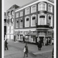 Kleiweg, hoek Turfmarkt, winkel Steps, 16 maart 1990. - Afbeelding Kleiweg, winkelpand Frans van Camp tegenover de Turfmarkt