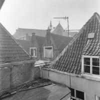 Opnamen van gebouw de Doelen aan de Lange Tiendeweg, waarin de HBS was gehuisvest, 1978. Gevel van het in 1902 aangebouwde gedeelte achter het gebouw. - Afbeelding Panorama over de St.-Janskerk vanaf de toren met links de Lange Tiendeweg.