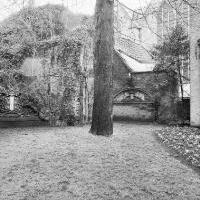 Opnamen van de Grote of St. -Janskerk Achter de Kerk, 1926. De steunbeer richting kosterwoning. - Afbeelding Opnamen van de St. -Janskerk Achter de Kerk. Doorkijkje via een steunbeer.