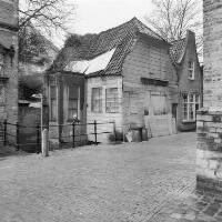 Opnamen van Achter de Kerk, juni 1962. De zijgevel boven het water van de steenhouwerij Roodbol westwaarts -