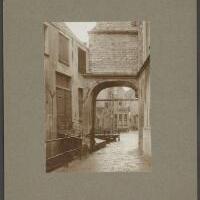Achter de Kerk, doorkijkje onder steunbeer ter hoogte van huisnummer 9/10. Rechts de in 1917 afgebroken aanbouwen.