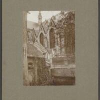 - Afbeelding Achter de Kerk met een steunbeer van de St.-Janskerk oostwaarts, ca. 1900.