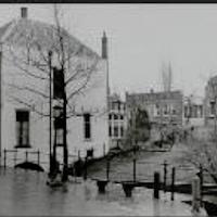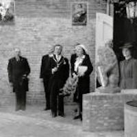 Bezoek van koningin Juliana aan Gouda, 1978. Het gezelschap op een bruggetje Achter de Kerk.