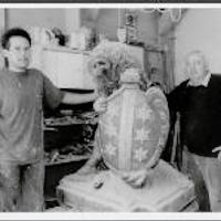 Achter de Kerk, vader en zoon Roodbol in hun atelier naast Goudse stadsleeuw