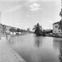 Vanaf de Kleiwegbrug gezicht op de Blekerssingel (links) en een gedeelte van de Nieuwe Markt. -