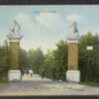 Van Bergen IJzendoornpark, pilaren met leeuwen bij de stationszijde -