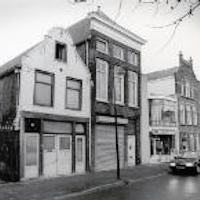 Nieuwehaven, bouwvallige en leegstaande panden nr. 213 en 215 van oud-pottenbakker. Ernaast onder meer een waterbeddenwinkel en Dumptoko. - Afbeelding Nieuwehaven, de Vrouwetoren en het gebouw van de brandweer