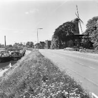 - Afbeelding Nieuwe Veerstal, drijvende jeugdherberg in afgemeerd schip 'Regina', voor molen 't Slot