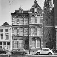 Gezicht op de St. Jozefkerk aan de Hoge Gouwe vanaf de brug tegen de Lange Groenendaal. -
