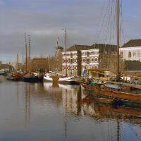 - Afbeelding Turfsingel. ca. 1904. Het laatste gedeelte gezien vanaf de Vest met gezicht op het Bolwerk en de rode brug. Links pakhuis Antwerpen