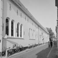 Opnamen van de Minderbroederssteeg. ca. 1975,Vanaf de Spieringstraat. - Afbeelding Opnamen van de Spieringstraat. oktober 1971,De hoek Lange Noodgodsstraat met rechts aardewerkfabriek Regina.