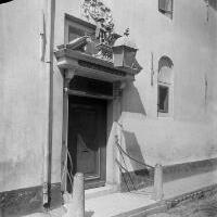 - Afbeelding Opnamen van het Weeshuis aan de Spieringstraat na de opmeting in verband met de naderende restauratie, 1962. Ingang naar de voormalige keuken (achterbouw).