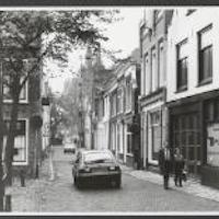 Spieringstraat, gezien richting Vroesenhuis. ca. 1990. - Afbeelding Spieringstraat, het Weeshuis met de poort naar de binnenplaats