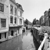 De Donkere sluis, 07-04-1988. Gezien richting Dubbele Buurt (in het witte huis is sieradensmid Adrie Bouter gevestigd). -