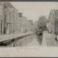 Achter de Vismarkt met bruggetje, ca. 1910. Op de achtergrond het stadhuis. -
