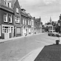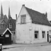 Achter de Vismarkt (gedempt in 1953) opgenomen vanaf de Lage Gouwe. -
