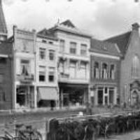 Oosthaven 3 t/m 9, ca. 1930. De St.-Jansbrug op de voorgrond; rechts de kapel van het St. Catharinagasthuis. -