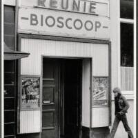 Oosthaven, ingang bioscoop De Reünie met aankondigingsposters - Afbeelding Oosthaven, ingang museum Het Catharina Gasthuis, voormalig Gasthuiskapel