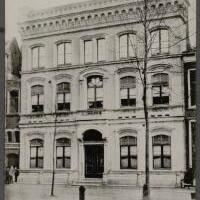 De voorgevel van de sociëteit de Reunie aan de Oosthaven, opgenomen t.g.v. de herdenking van het 60-jarig bestaan. - Afbeelding De voorgevel van het Henriette Hoffmanhuis aan de Oosthaven, ca. 1962