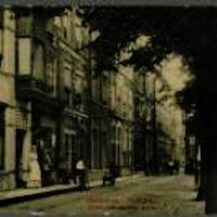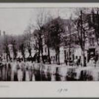 De Westhaven vanaf de Donkere sluis zuidwaarts. Vlnr B 196: G. de Jong, houtkoper. B 197: J. Temminck, kapitein der infanterie. B 198: J. Rietveld in fruit. B 199: Slotemaker & Co in mineraalwater. B 200: A. de Raadt, manufacturen. B 201: G. de Jong, schipper in aardappelen, vrouw de winkel? B 202: R.K. pastorie. B 203: P. Maas, boekhandel. -