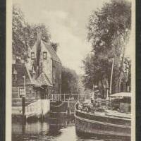 Het einde van de Oosthaven en de Westhaven, met het tolhuis centraal, ca. 1900. -