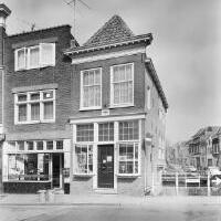 - Afbeelding Hoek Lange Tiendeweg/Houtmansplantsoen, het pand op nr. 104 bestaat uit twee delen; een kapperswinkel en foto-etalage, beiden met bovenwoning.