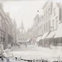 Ingang van het Schimmelpennings steegje. Links is nog net boekhandel Verkaaik zichtbaar -