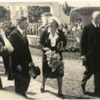 Foto's uit een album aangeboden aan de gemeente Gouda ter herinnering aan de streektentoonstelling Hart van Holland, gehouden van 19 t/m 28-6-1947 aan de Graaf Florisweg. Rondgang van prinses Juliana met de burgemeester en C.H. Hagedorn - Afbeelding Foto's uit een album aangeboden aan de gemeente Gouda terherinnering aan de streektentoonstelling Hart van Holland, gehouden van 19 t/m 28-6-1947 aan de Graaf Florisweg. Bezoek van prinses Juliana en gevolg aan het museum. De stoet nadert de Wijdstraat.