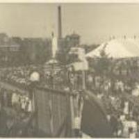 Foto's uit een album aangeboden aan de gemeente Gouda ter herinnering aan de streektentoonstelling Hart van Holland, gehouden van 19 t/m 28-6-1947 aan de Graaf Florisweg. Drukte vóór het tentoonstellingsterrein. -