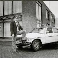 Jaagpad, eigenaar Thalia Taxi bij zijn taxi voor het nieuwe pand -