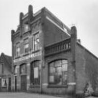 Een gedeelte van de asschuur aan de Vest van de gemeentelijke reinigingsdienst. ca. 1930, - Afbeelding Een jacht, bestemd voor de Amerikaanse markt, wordt aan de Vest ter hoogte van molen De Rode Leeuw te water gelaten.