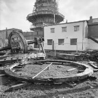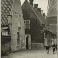 - Afbeelding Korte Raam, bij het kruispunt met Bogen Raam en Vest. Bouwketen op de hoek en in verte de schoorstenen van Unilever.
