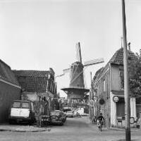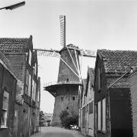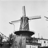 Molen De Korenbloem (verbrand in 1949) aan de Vest, gezien vanaf de Turfsingel, augustus 1930. -
