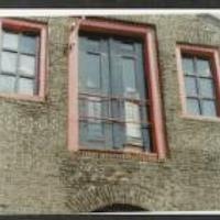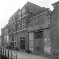 Opnamen van de Peperstraat. Voormalig koetshuis met 17e eeuwse bovenpui, eertijds behorende bij het patriciershuis aan de Westhaven, waarin het gymnasium was ondergebracht. - Afbeelding Opnamen van verschillende gevelstenen, juli 1946. In Haestrecht in de Peperstraat.
