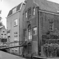 Peperstraat 112, 114, woonhuis. Naambord met opschrift: Fa. Chr. G.F. de Jong en Zn. Aannemersbedrijfs Gouda -